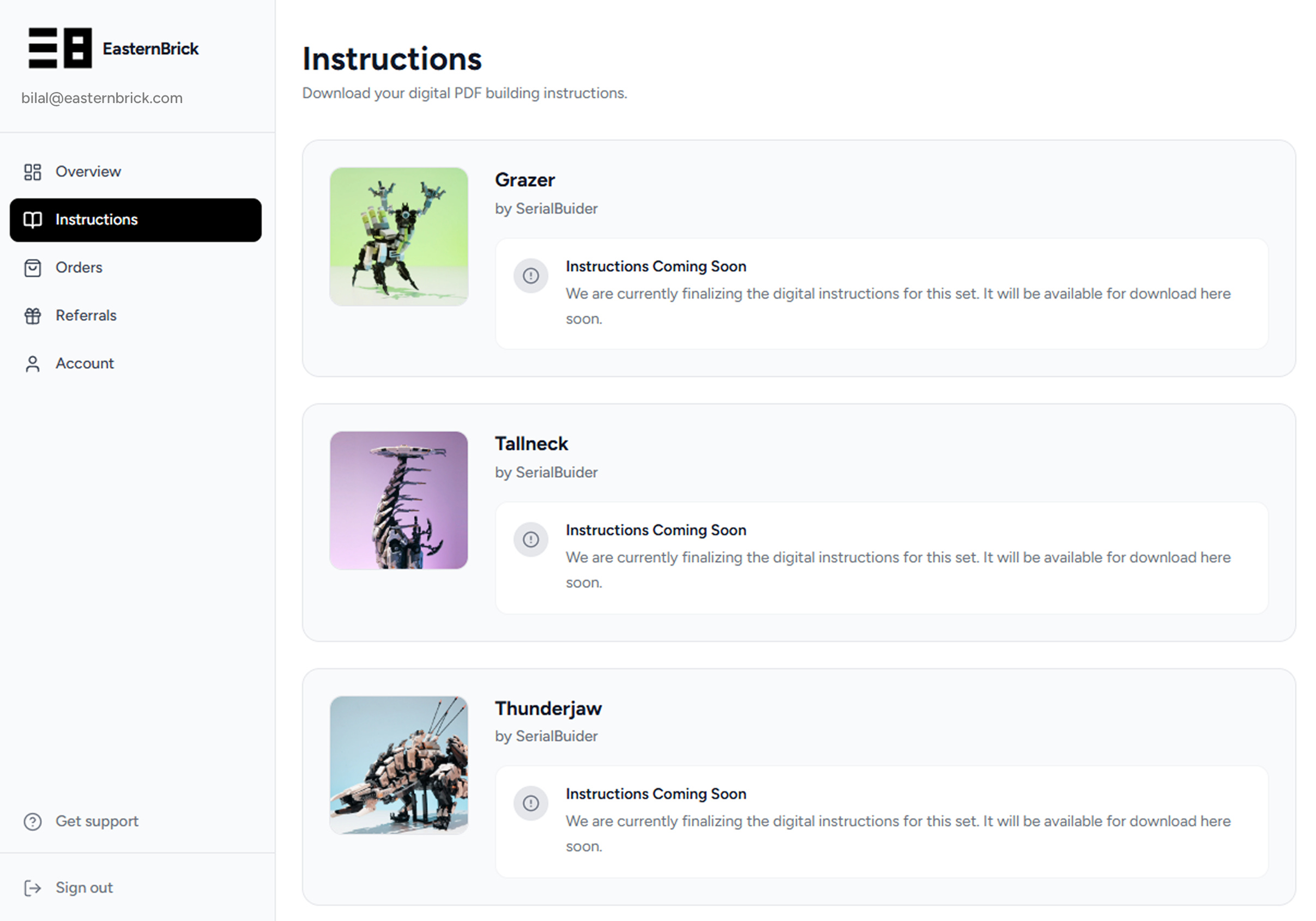 We’ve updated the dashboard to now organise everything a little better and there is a clear location for where you can find all your digital instructions ready for when the set arrives.