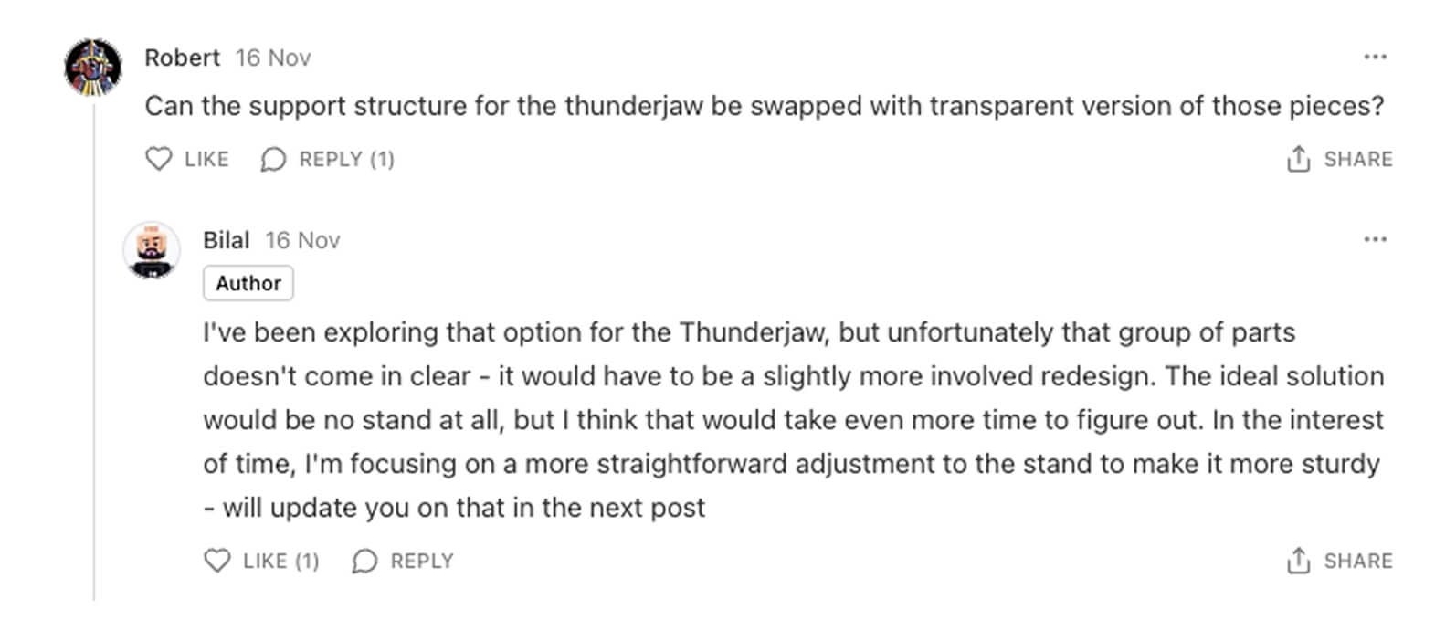 Anyway! The good news is that we’ve finished the fixes and have submitted the parts list to the factory for review and will be proceeding with starting to manufacture the sets imminently. We’re about 2 weeks behind due to these fixes, but hopefully you’ll appreciate the extra 2 weeks wait once you get the sets. To make up for the slight delay, we’ll be including all 318 extra parts (slightly less for the Core Edition) for free along with your set to also show how committed we are to delivering a superior product and to show how we’re supporting the Creators we work with. We also expect to be providing as much support as we can afterwards and sharing more fixes or upgrades if we come across them for the builds at a later date.